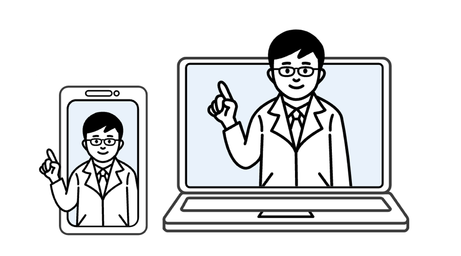 スマホやPCで、ご自宅・職場から診察を受けられます。通院の手間を省き、治療継続を容易にします。